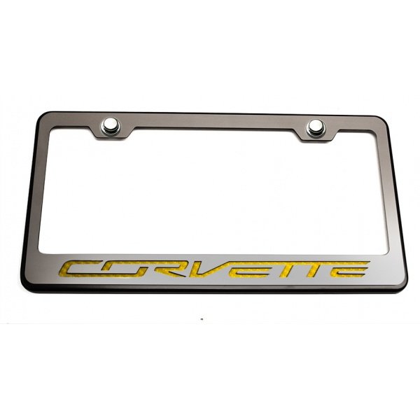 American Car Craft Rear Tag Frame, Black, With Brushed Stainless "Corvette" Lettering, Colored| 052083 Corvette Stingray 2014-2017