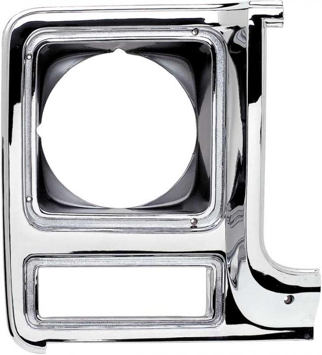 OER® Authorized reproduction headlight bezel for 1979-80 Chevrolet and GMC pickup, Blazer, Jimmy and Suburban models with round headlamp bulbs. Each bezel is manufactured in durable ABS plastic to replicate the original in quality and design. Features the correct bright chrome finish with the deep recessed areas painted dark argent silver. RH, fits the passenger side of the vehicle.