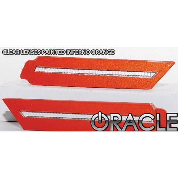 These Oracle 5th Gen Camaro Concept Side Markers are made after the 2009 Camaro Concept, which give you a sleeker design. Get rid of those big orange and red side markers by adding LED's to your side markers while keeping a flush body line. These are very easy to install, they just mount into the original factory holes and plug into original factory harness. All these side markers come in all factory colors, as well as a plain clear lens.