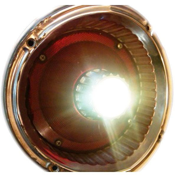 These are ultra bright LED tail lights with sunburst effect AND super white LED back-up lamp for Ford Falcon. Replace your existing incandescent lamps for far brighter and redder tail lights; new LED modules are at least 5 times brighter than regular incandescent lamps. The LED modules are especially designed by Mustang Project to provide bright, even illumination and to effectively utilize the existing Falcon reflector and lense. This kit works on Falcon tail lamps with or without back-up lamps! Unique sunburst lighting effect during turn signaling; lamps are full bright during braking and "sunburst" during turn signal activation. They run dim when driving lights are on and go to full bright when brake is applied. No false turn signaling during braking like other kits! Limited lifetime warranty!