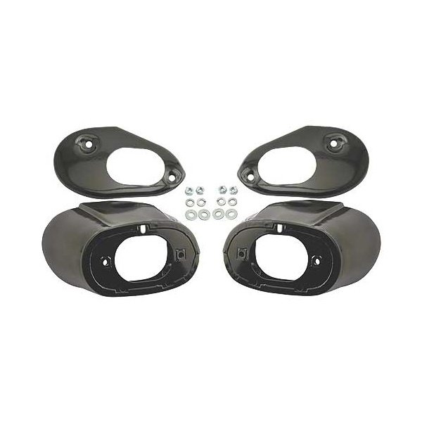 These left and right side housings do not have trim holes for ornaments, but mounting plates & hardware are included. They are a smooth style for use without stainless trim.