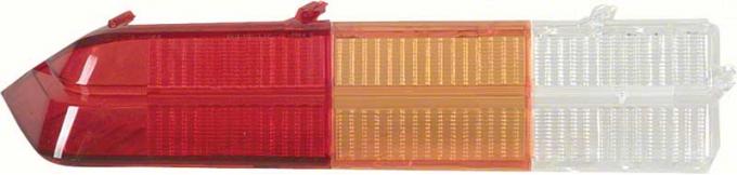 Reproduction of the original tail light lens for use with 1978-81 Camaro standard models and 1978-79 Z28 models. This reproduction lens is manufactured in high-quality injection-molded UV acrylic matching the original GM design. Features correct color lenses that will replace and install same as original. Includes original "SAE" and "Guide" markings for an authentic replacement. For use on LH driver side.