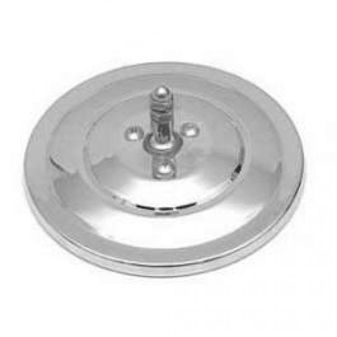 Reproduction of the original exterior round mirror head for use on 1947-72 models. Chrome with 5" ribbed design.