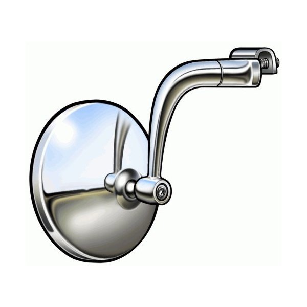 Universal Peep Mirror - Curved Chrome Arm - Right Or Left - 4 Diameter Stainless Steel Head