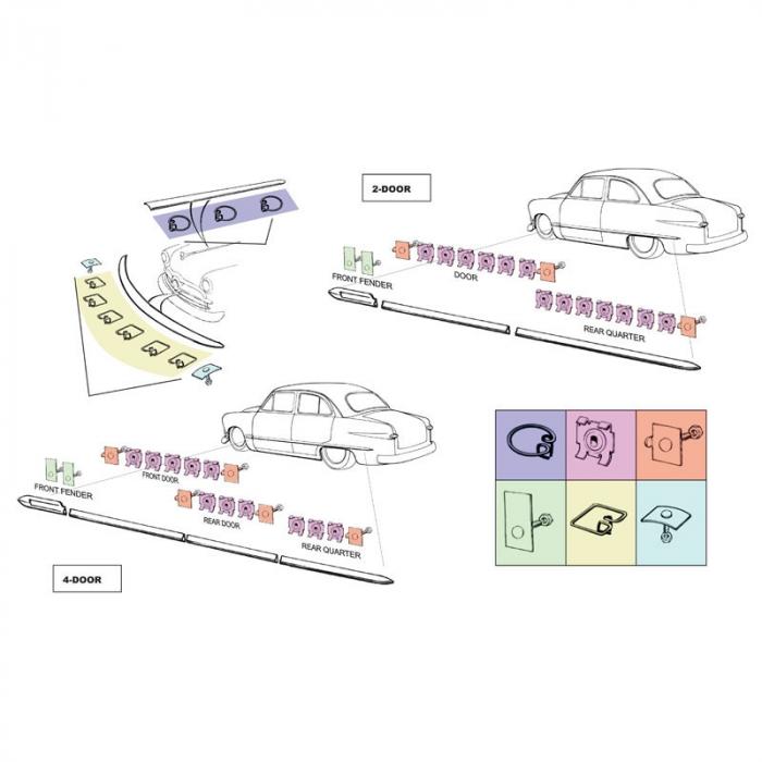 | Ford | Custom | 1949 - 1950 | All ex. Wagon & Sedan Del. |