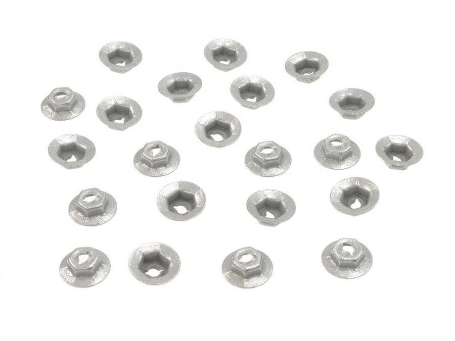- Complete 22-piece set includes top speed nuts sized for factory moulding attachment points.