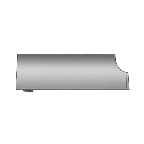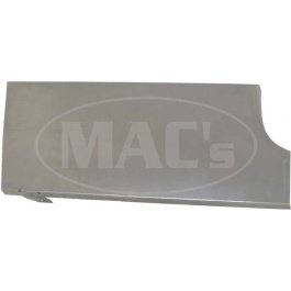 The fender bottom rear patch panel, repairs the area from the outer rocker panel 28 inches forward, and is 10-1/4 inches high. On 1956-1957 models it fits just below the vent door. This panel is flanged at the door opening and has a mounting plate for the fender bracket.