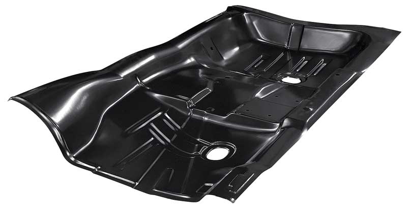 Reproduction of the original floor pan for 1965-70 Chevrolet Impala, Bel Air, Biscayne, and Caprice models. Each floor pan is manufactured in stamped steel to original factory specifications featuring correct contours for an authentic appearance and fit. The seat track mounting area must be removed from the existing panel and reinstalled onto the reproduction panel. Comes with black EDP coating for rust and corrosion prevention.