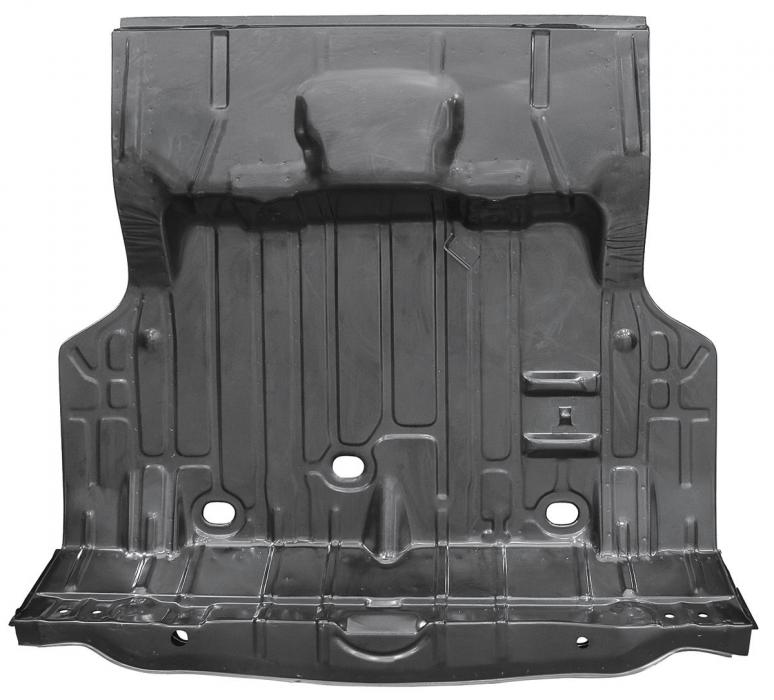 Why compromise? This stamped steel pan is manufactured to factory specifications and meets the highest standards. Covering the entire trunk with one panel is simply smart business; eliminate all of the rust and rot, while saving tons of labor. Includes fuel tank braces and body braces.