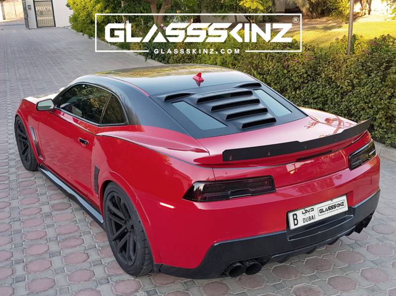 2016-19 Camaro GlassSkinz Tekno 1 rear window valance / louvers add dramatic styling, are easy to install, and are proudly made in the USA. Available in raw gloss black (NO painting or sealing required, ready to install), ALL OEM colors, satin black, & matte black