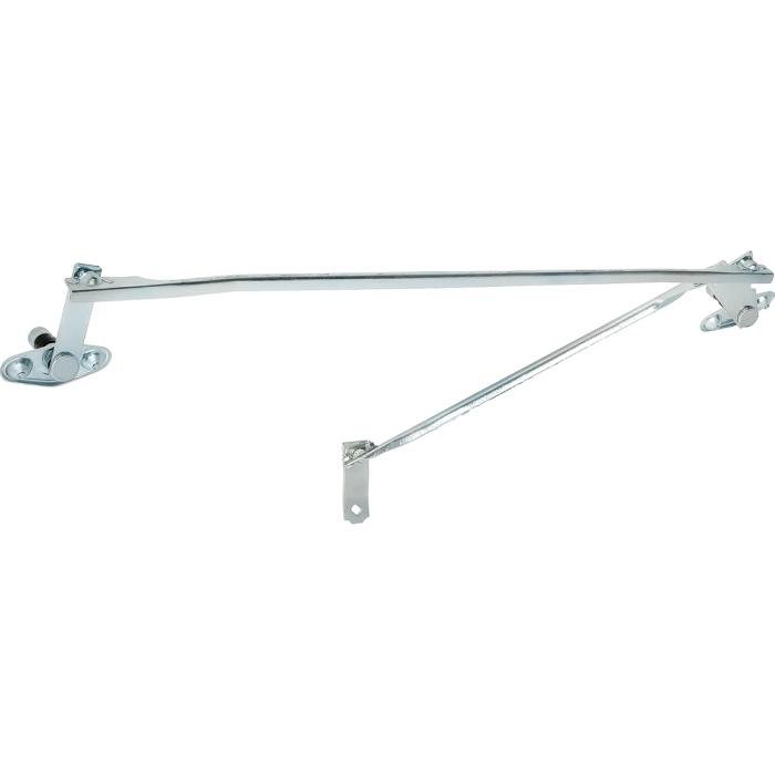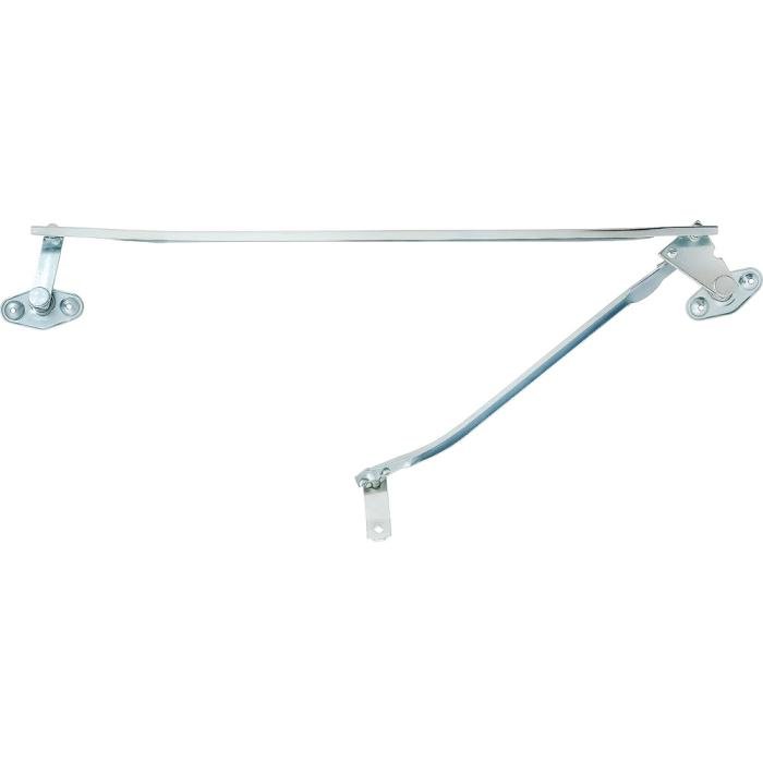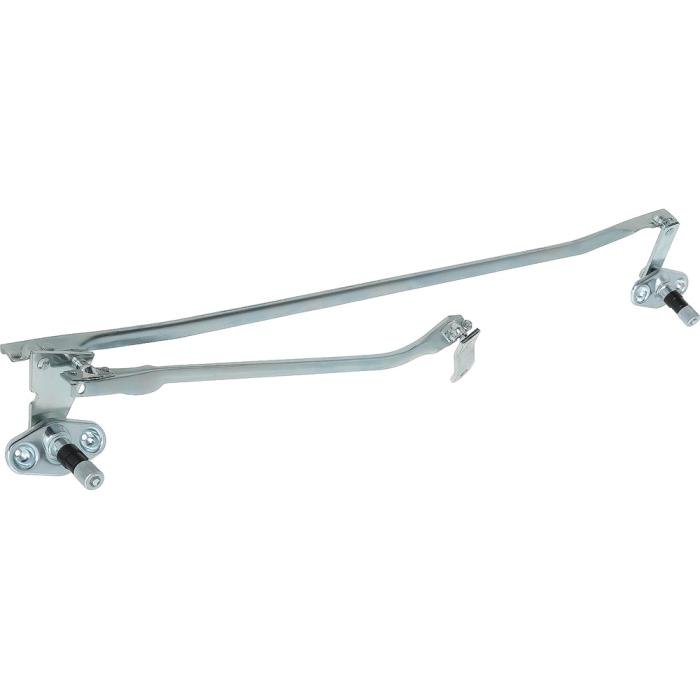 Reproduction windshield wiper transmission for 1967 Camaro and Firebird models. This quality reproduction includes all links and pivots from the wiper motor to the wiper arm, along with the splined output shafts that the wiper arms attach to. Designed to replace missing, inoperative, or corroded originals, this assembly is a direct replacement for units that have seized with rust, broken bolts, or failed rivets. Replaces GM part numbers # 4917117, 4917576, and 4918754.