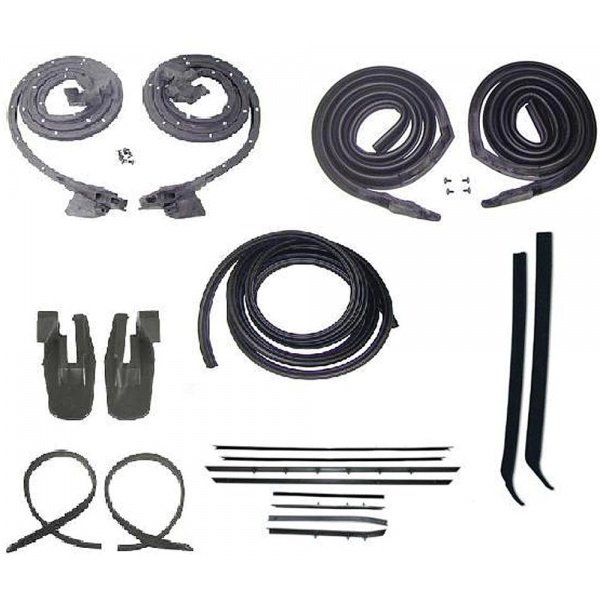 Complete Weatherstrip Kit (1) Pair of Door Weatherstrips (1) Pair of Roof Rail Weatherstrips (1) Trunk Weatherstrip (1) Pair of Quarter Window Seals with Steel Inserts (1) Pair of Quarter Window U-jamb Seals with Steel Inserts (1) Pair of Window Run Channels (1) Set of OEStyle Window Felts Weatherstripping on your 1967 Firebird is extremely important if you want to keep it in good shape. Don't let the elements get into your Firebird and wreak havoc! This complete set of Firebird weatherstrips will save you time when your weatherstrips inevitably become worn and damaged later.