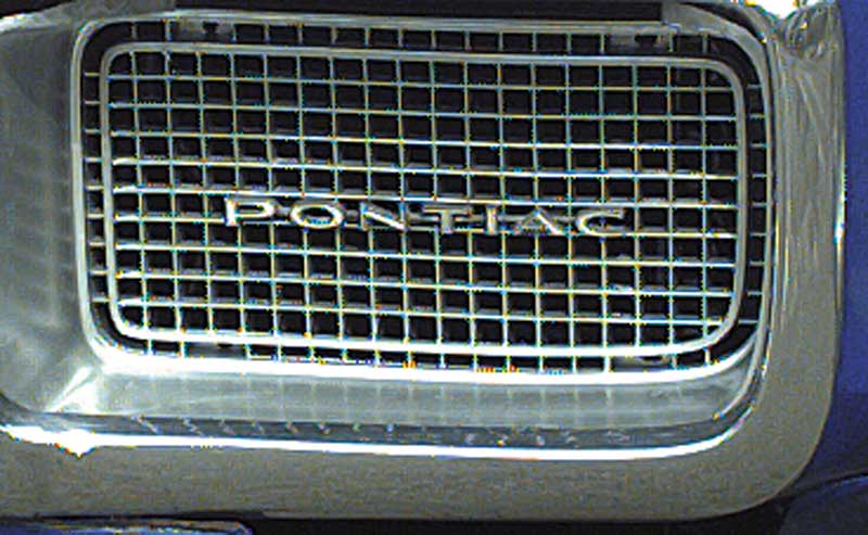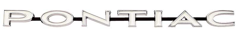 Correct reproduction "Pontiac" grill emblem for 1967-69 Pontiac Firebird models. This emblem is manufactured in die-cast zinc replicating the original in design and appearance. Features correct white paint scheme in the center with chrome on the outer edges and black background. Includes mounting hardware.