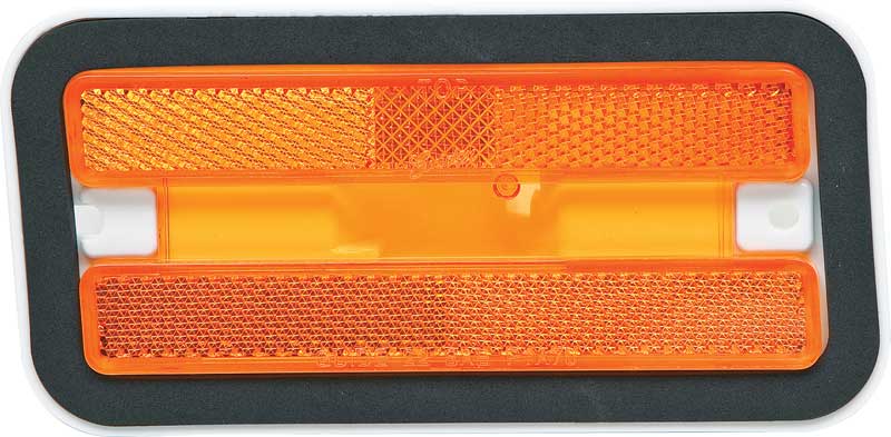 Reproduction of the original front side marker lamp assembly for use on 1970-81 Firebird models. This lamp assembly is manufactured to exact specifications and will replace the discolored or non working original. Includes correct color amber lens with gasket.