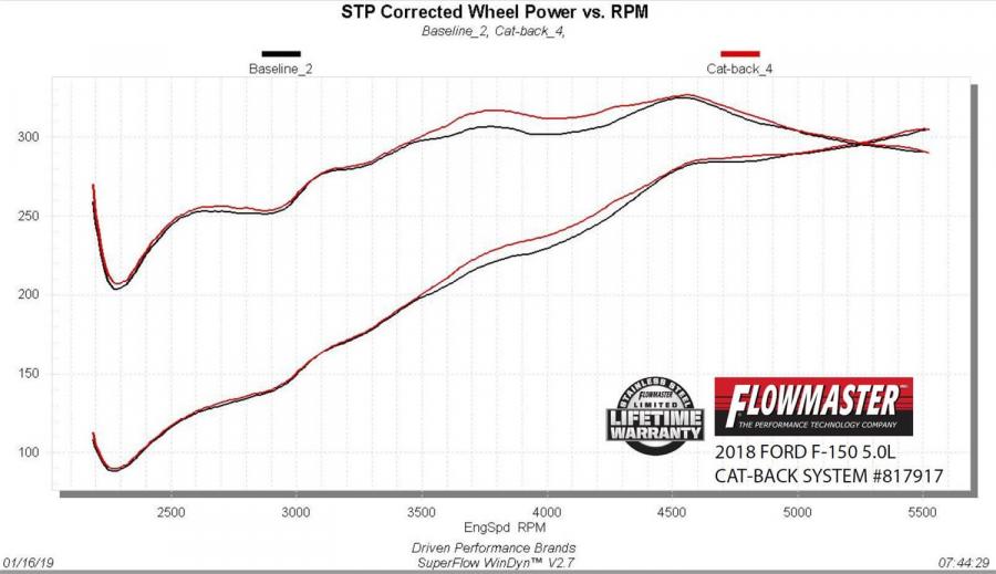 Introducing our new Outlaw® Extreme Cat-back exhaust system for all 2015-2020 Ford F-150 with 2.7L/3.5L Ecoboost, 3.5L Ti VCT and 5.0L engines. This system delivers the ultimate aggressive exhaust note that will get you noticed. The system slips on the back side of the catalytic converter tubing and features a 3.00-inch race-proven Outlaw muffler and a mandrel-bent single dump style turndown exiting under the bed, for the ultimate deep and aggressive sound. The system is manufactured from 409 stainless steel for durability and uses the factory hanger locations for a quick and easy installation. As a Flowmaster® Outlaw extreme system, this will deliver a very aggressive sound both inside and outside the truck. Includes all necessary hardware and detailed instructions for a quick and easy installation. Notes: Fits all 2/4 wheel drive models and all wheelbases.