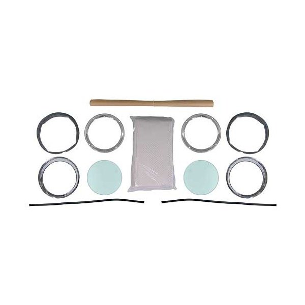 Porthole kits include inside and outside rings, rubber seals, clear or tinted glass, spacers, 4 bow headliner in either white or bone, template and instructions. Hardware is not included. To purchase the hardware kit see B6S-4030000-KT.