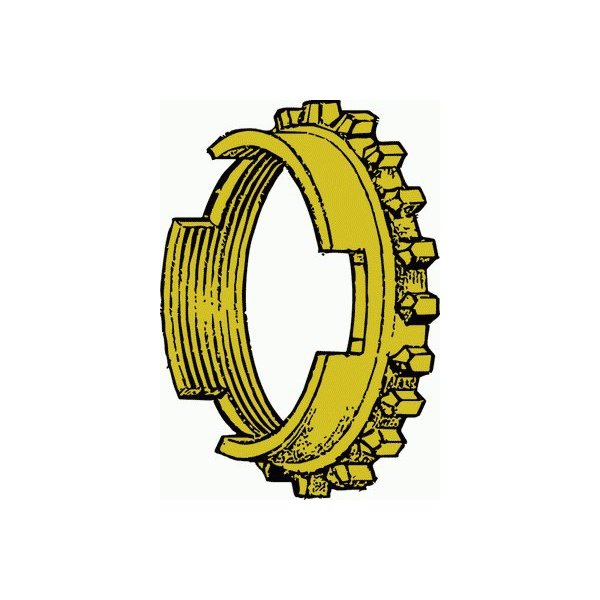 Please note that this ring has 3 slots in it that come unfinished to spec from our only known manufacturer. These slots fit over the synchro clips (or dogs). They will need to be measured and filed to the correct size. Measuring from the gear side to the bottom of the slot, the measurement should be approximately 0.300. The ring must be carefully supported and the slots filed to the correct height prior to being installed in the synchronizer assembly.