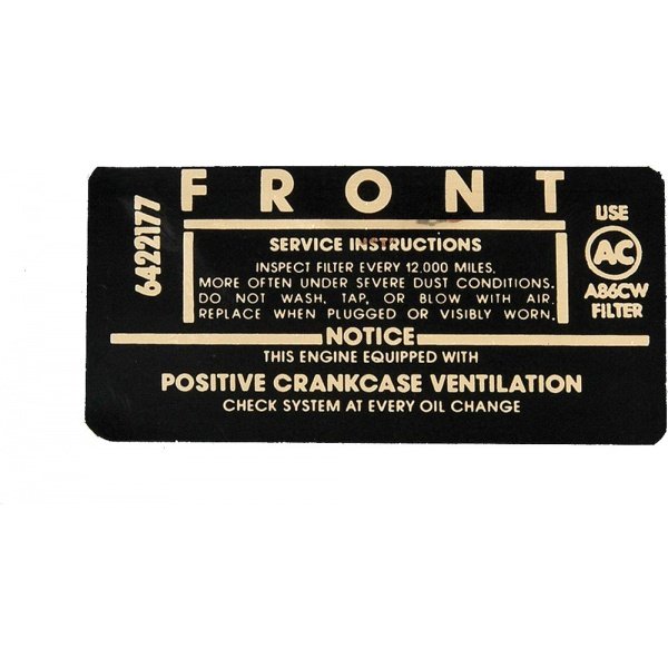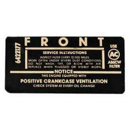 Full Size Chevy Air Cleaner Service Instructions Decal, 283ci, 1962-1963