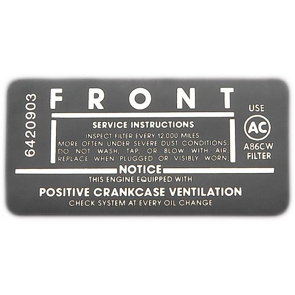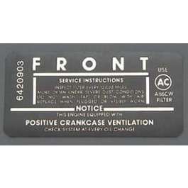 Full Size Chevy Air Cleaner Service Instructions Decal, 327ci/250hp, 1963-1965