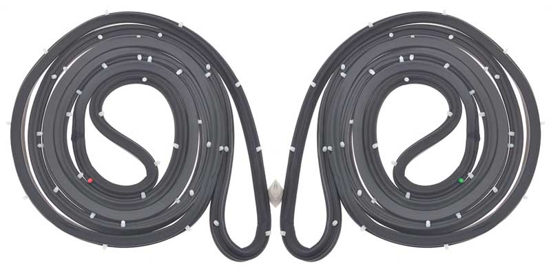 Reproduction of the original door frame weatherstripping designed for use on 1965-66 Chevrolet Impala Bel Air, Biscayne, Caprice, and Pontiac Catalina, and Bonneville 2-Door Sedan models. Each weatherstrip is designed to replace the original and offer a tight seal once replaced. Manufactured to exact specifications, these reproductions include correct mounting clips and will replace the original exactly. Sold in pairs. Includes RH and LH door weatherstrips.