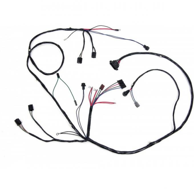 Factory Fit engine harnesses are manufactured according to the original General Motors specifications. Each part number is fully assembled, taped and ready to install upon arrival. This harness will plug into the firewall in the original location, and will follow original routing in the engine compartment. A combination of the engine and front light harness accomplish most functions under the hood of an early GM vehicle. This harness is built for an original alternator with an external voltage regulator.