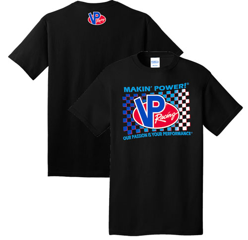 VP racing Fuels with a retro vibe! This black T pops with the iconic VP racing colors over a old school look!