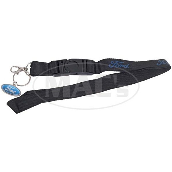 100% Nylon Ford On Lanyard Key and Badge Holder The Blue Oval dominates this cool and practical key and badge lanyard that will impress Ford fans everywhere. Crafted of 100% nylon, this sturdy lanyard features a detachable key and badge fob. Also includes a cool Blue Oval epoxy key chain.
