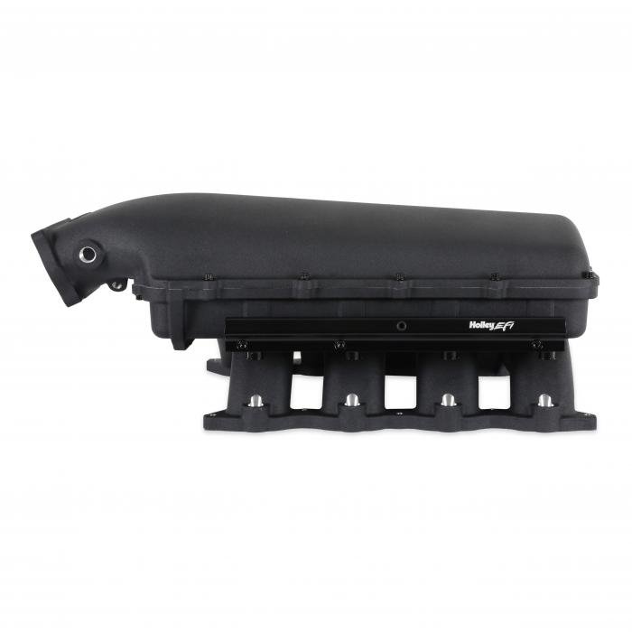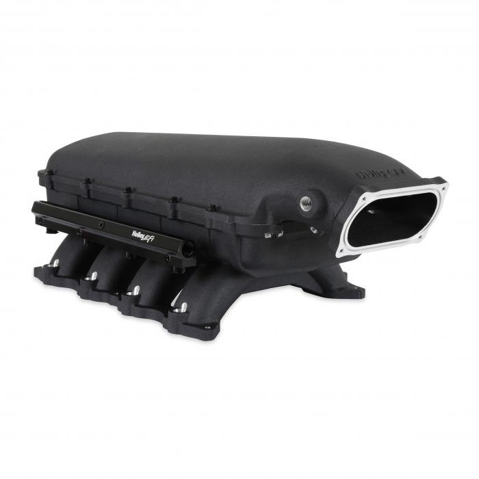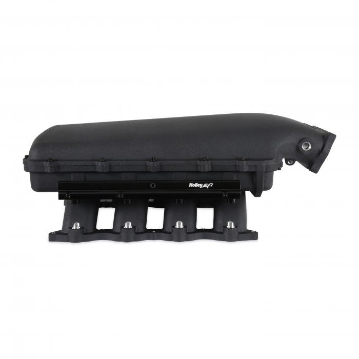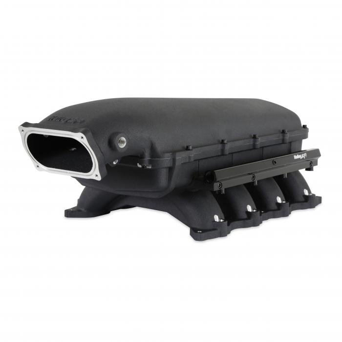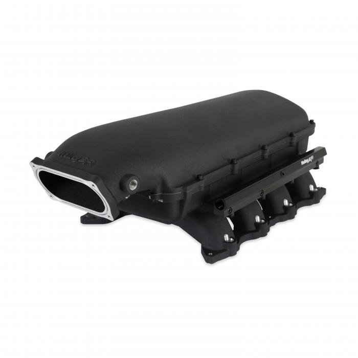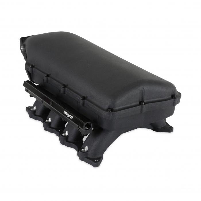 The aggressively designed Hi-Ram is constructed in a two-piece design to accommodate for air to water intercoolers and feature up to 20% more plenum volume versus Ultra Lo Rams. This manifold design is only offered in an oval throttle body configuration.