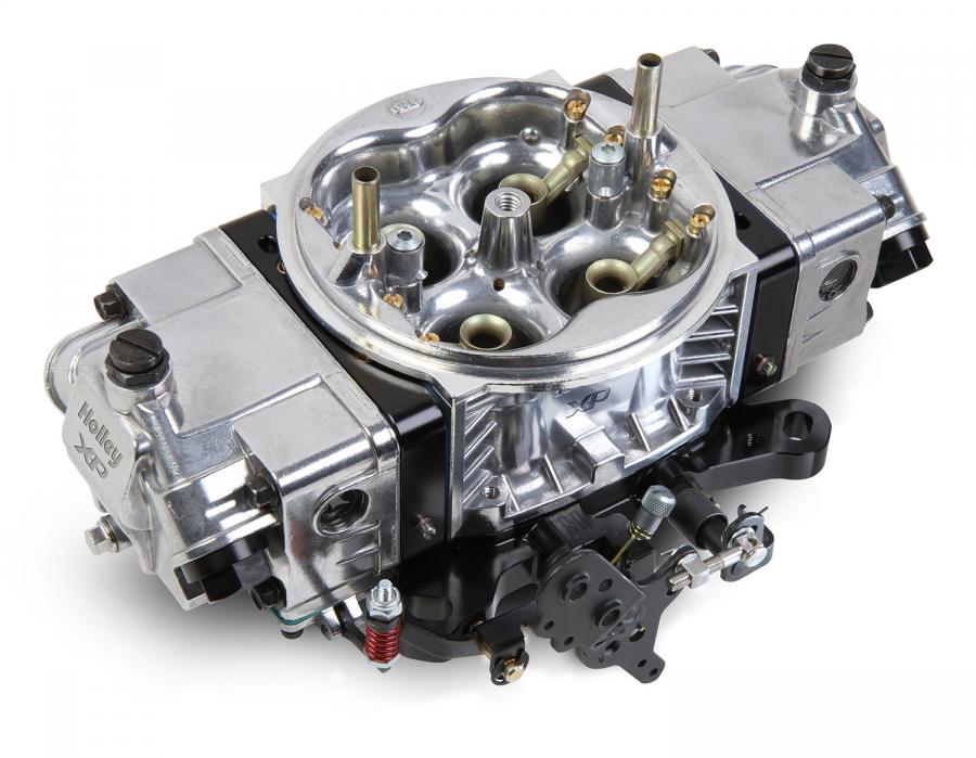Xtreme Performance - Holley Ultra XP™ carburetors! Ultra XP carbs are up to 38% lighter than our traditional race carbs, have fuel capacity that is 20% greater and 30 other new features! They're available in our all-new Hard Core Gray™ hard coat anodized finish with Black™ billet for improved corrosion protection. They're also available in natural tumble-polished aluminum with your choice of Black™ or Red™ metering blocks and base plate. The Aluminum Ultra XP comes in 600, 650, 750, 850, and True 950-CFM. Holley Ultra XP carburetors offer new features such as an integrated idle bypass valve that allows for idle adjustments while maintaining the correct throttle plate to transfer slot relationship, high capacity fuel bowls which feature 20% more fuel capacity to eliminate starvation, integrated fuel shelf to minimize fuel aeration and internal baffling to control fuel slosh. Other features include all aluminum construction, fully tunable billet metering blocks, billet base plate, adjustable secondary linkage and knurled (hand adjustable) curb idle screws. Holley Ultra XP carburetors are the ultimate in square bore race carburetors!