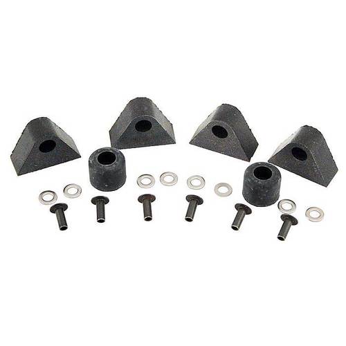 The 1931's used this hood bumper set. The 2 round ones went on the inside center support, and the 4 triangle pieces went under each of the hood clips. Set includes the correct 9/64" black japaned semi tubular rivets for attaching. U.S.A.