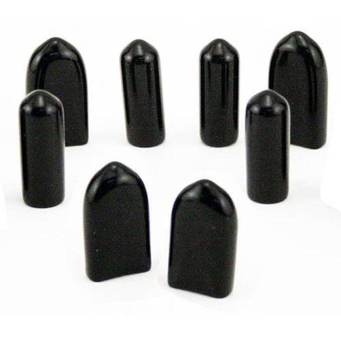 Rubber caps that protect the paint from getting scratched. 4 round caps for end of hood handle that latches on hood and 4 rectangle tips that mount on the outer edge of the hood handle where you pull up with your fingers. Note: 1 set does all 4 hood handles. U.S.A.