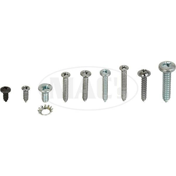 Complete kit of interior screws used on your classic. Brand new sets include all the screws used in the interior of your vehicle to include sill plates, interiot trim moldings, kick panels, seat hinge brackets. Our kits were made to save your valuable time. All in one bag with master list for each item included. Stop searching the garage floor for that old corroded hardware, we have it new!