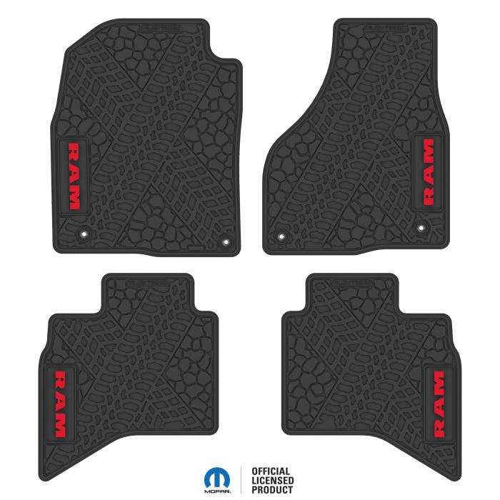FlexTread 12-18 Dodge Ram 1500 Quad Cab/19-24 Dodge Ram 1500 Classic Quad Cab (4 pc) w/ RAM Text Logo NGTT12016: