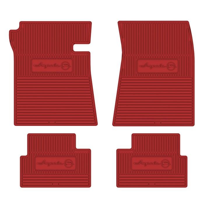 • 1962 IMPALA NEXT GENERATION CUSTOM VINTAGE RUBBER STYLE FLOOR MATS DESIGNED TO FIT THE ENTIRE FLOOR PAN OF YOUR CAR. GM LICENSED LOGOS ARE FEATURED ON BOTH FRONT AND REAR MATS.