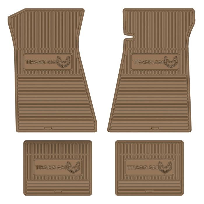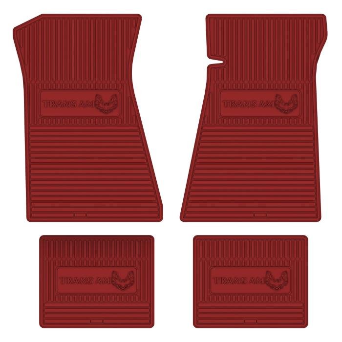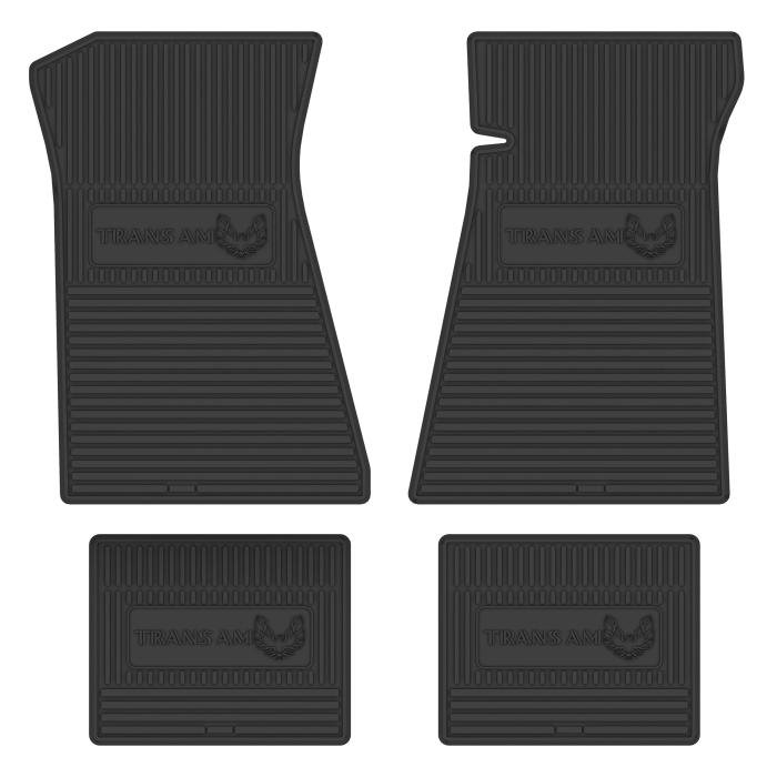 • 1975-78 TRANS AM NEXT GENERATION CUSTOM VINTAGE RUBBER STYLE FLOOR MATS DESIGNED TO FIT THE ENTIRE FLOOR PAN OF YOUR CAR. GM LICENSED LOGOS ARE FEATURED ON BOTH FRONT AND REAR MATS.