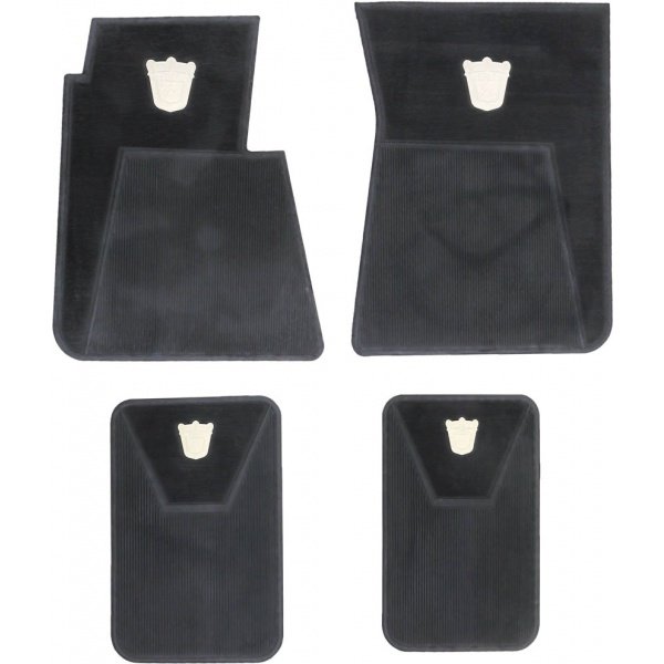 This is the original style accessory front floormats available as an option on 1960-1964 Galaxie. These feature a rubber mat with Ford crest molded in white right into the mat like the original. A rare accessory now available brand new for your restoration. Front pair only.