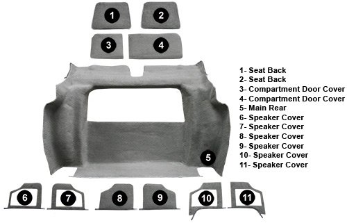 • Main rear seat backs 2 compartment door covers and 4 speaker covers.