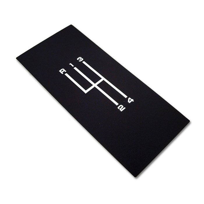 New reproduction black and chrome 4 speed pattern manual shifter indicator plate.