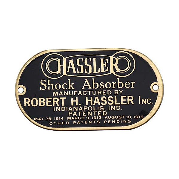 This tag has brass finish and includes rivets.