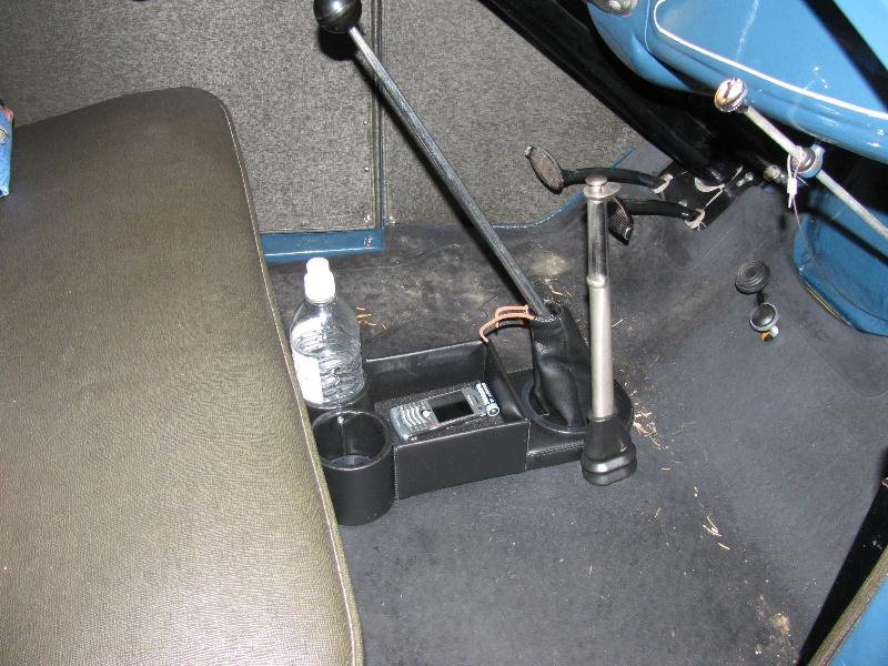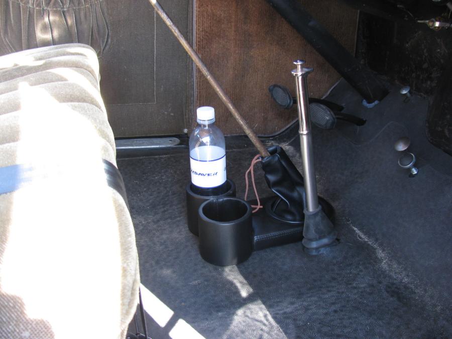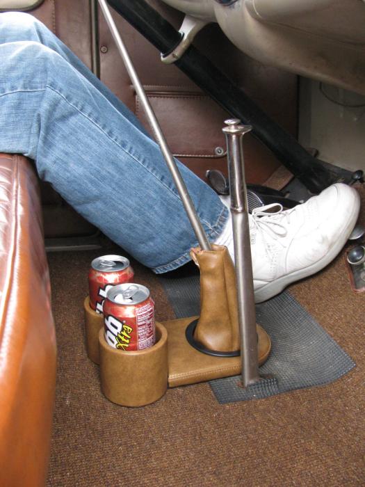 Slide the integrated shifter boot over and down the manual shifter until it rests on the flat floorboard of the roadster. The Vagabond multi-directional allowing the drink holders to be in front of or behind the shifter.