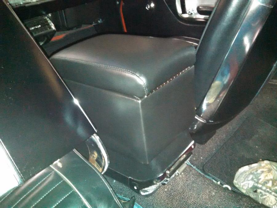 This Handcrafted Ford Galaxie 500 Saddle console slides between the factory bucket seats, just behind the gear selector and rests securely on the factory installed console. You will appreciate the detail of this professionally upholstered console. Coupled with quality materials and automotive-grade vinyl. Equally important is our large selection of standard color options that will complement original and aftermarket interiors.