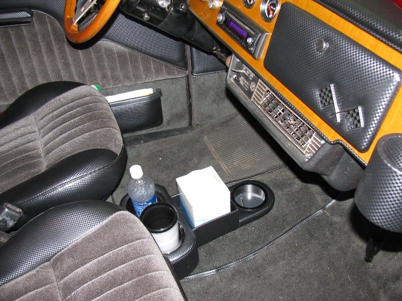 • The HR Drinkster Shorty is a shorter version floor console. Specifically designed to work great in cars or trucks with limited floor space. In addition, there are two large drink holders and a 5″ x 5″ open storage area.