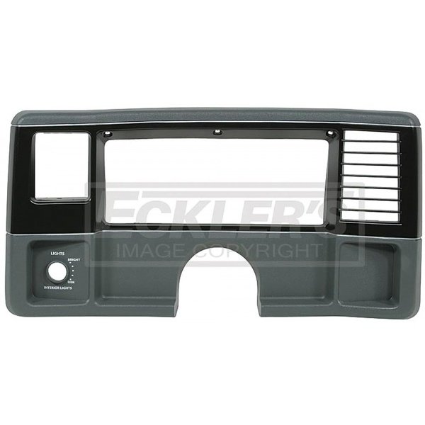 Reproduction Of Original Made On Original Tooling Correct Dark Gray With Semi Gloss Inlay Correctly Pad Printed Headlight Switch Label Correct Stripe Also Correct For 1986-88 Monte Carlo NOTE: Customers must use old warning light lens and heat stake in place with new lens holder supplied with the face plate. This El Camino reproduction dash face plate has been manufactured to original factory specifications using today's modern manufacturing techniques. You will find the fit, finish and function will work superbly for your restoration. In addition, using a reproduction dash face plate from the El Camino Store will add authenticity and value to your vehicle.