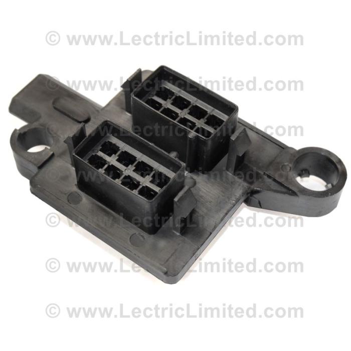 this is the connector that attaches to the back side of the fuse block (includes connector, terminals, and firewall gasket) . No returns or exchanges.