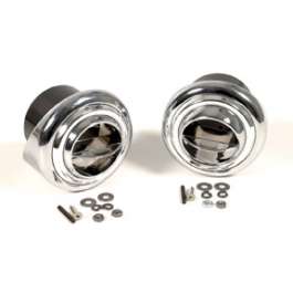 Beautiful Chrome Plated Metal Housings Fully Adjustable Center Ball Vent 2-1/2 Hose Inlets Are Direct Fit To Our Vintage Air And Other Aftermarket Units Requires Cutting Of Dash & Custom Fitting Will Not Fit Factory Air Dash Cutouts Template Included For 1955-57 Dashboards Installation Hardware Included