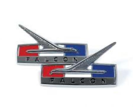These are the small die cast emblems that mount on all 64/65 Falcons and Rancheros with Sprint and Futura door panels. Chrome plated and painted as origianl.