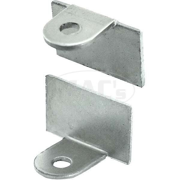 These brackets fit inside of the front door post and hold the door check arms (B702828FO). Spot weld them to the door post. One set is required per door.