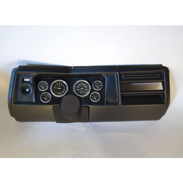 Great Modern Upgrade Modern Accurate Gauges Included Molded ABS Plastic Dash Panels Replaces Original Gauge Housing Clusters Come Complete With Wiring Harness Includes Oil & Temperature Sending Units Includes Turn Signal & High Beam Indicators 3-3/8? 140 Speedometer 10,000 RPM Tachometer 2-1/16? Oil Pressure Gauge 2-1/16? Water Temperature Gauge 2-1/16? Fuel Gauge 2-1/16? Volt Gauge Speedometer Sending Unit P/N 612094 (Sold Separately) Instructions Included This Chevelle replacement instrument cluster panel has been manufactured to meet or exceed factory specifications and performance. You will find the fit, finish and function will work perfectly for your Chevelle.