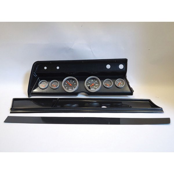 Great Modern Upgrade Modern Accurate Gauges Included Molded ABS Plastic Dash Panels Replaces Original Gauge Housing Clusters Come Complete With Wiring Harness Includes Oil & Temperature Sending Units Includes Turn Signal & High Beam Indicators 3-3/8? 160 Speedometer 8,000 RPM Tachometer 2-1/16? Oil Pressure Gauge 2-1/16? Water Temperature Gauge 2-1/16? Fuel Gauge 2-1/16? Volt Gauge Instructions Included This Chevelle replacement instrument cluster panel has been manufactured to meet or exceed factory specifications and performance. You will find the fit, finish and function will work perfectly for your Chevelle.