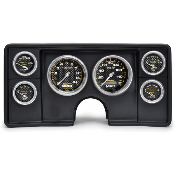Prefect Upgrade For Any Malibu Replaces Original Gauge Housing Converts Gauge And Non Gauge Cars UV Resistant ABS Plastic Housing Is A 2 Piece Construction Like The Original Beautiful 5 Carbon Fiber Series Speedometer 5 10,000 RPM Carbon Fiber Series Tachometer 2-5/8 Fuel, Oil, Water And Volt Gauges Wiring Harness And Instructions Speedometer Sending Unit To Convert Analog Signal To Electric P/N 612094 (Sold Separately) This Malibu replacement covan gauge panel has been manufactured to meet or exceed factory specifications and performance. You will find the fit, finish and function will work perfectly for your Malibu.